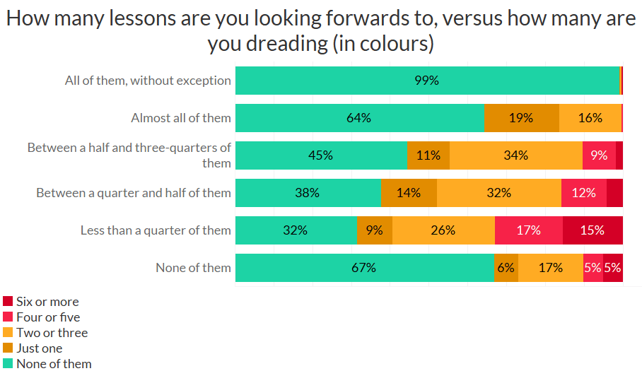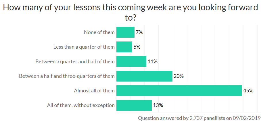 Thankfully, 13% of teachers are looking forward to every single lesson.