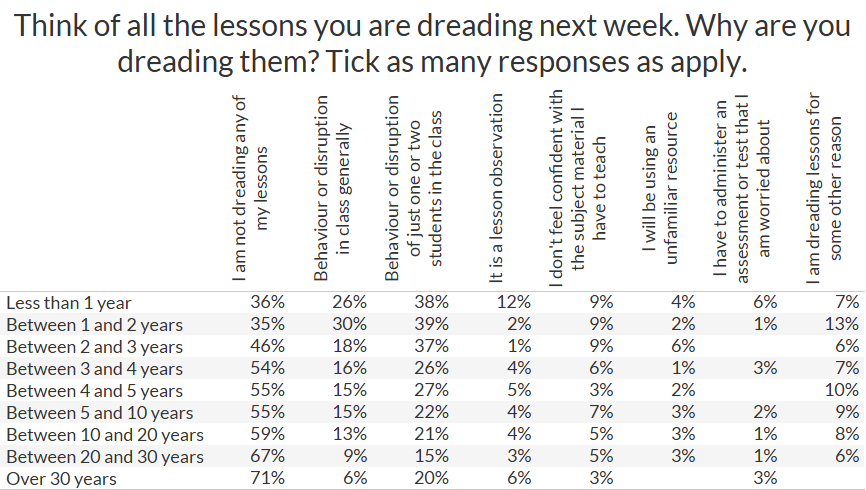 And, yet again, new teachers are particularly affected by behaviour (and also lesson observations)