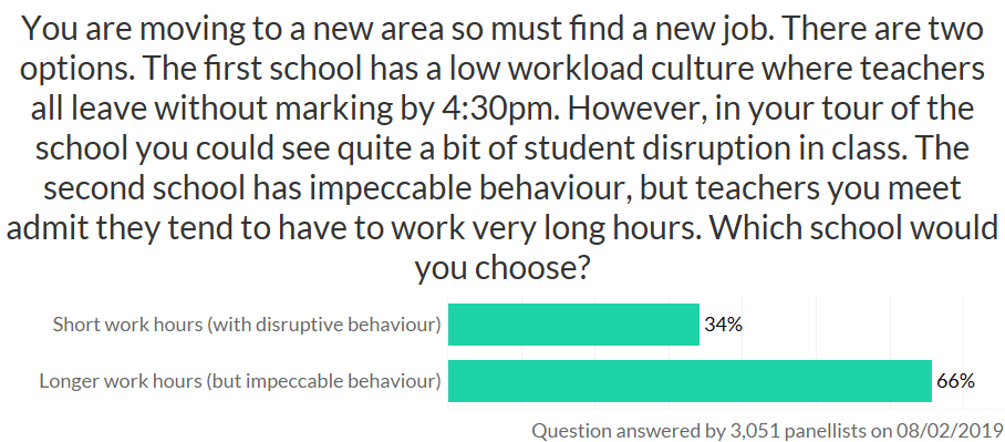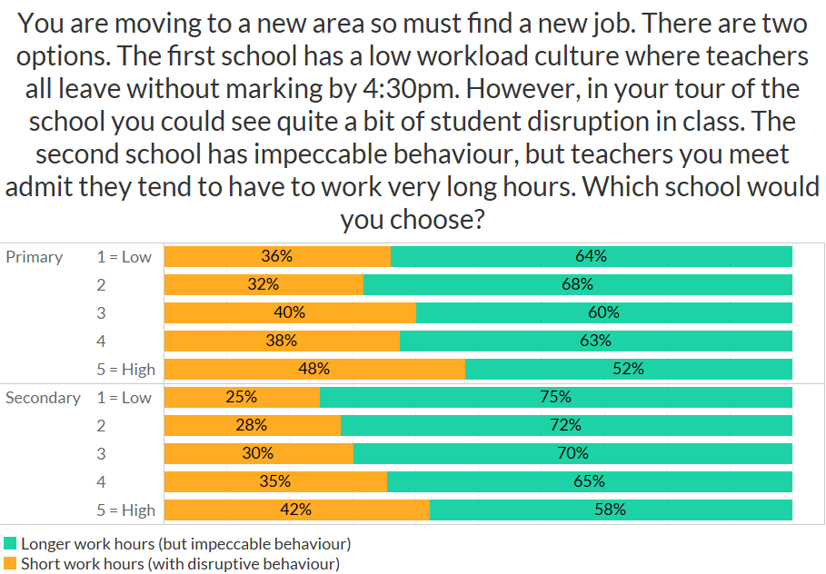 When given the choice: most teachers prefer to work somewhere with longer hours in return for fewer behaviour issues.