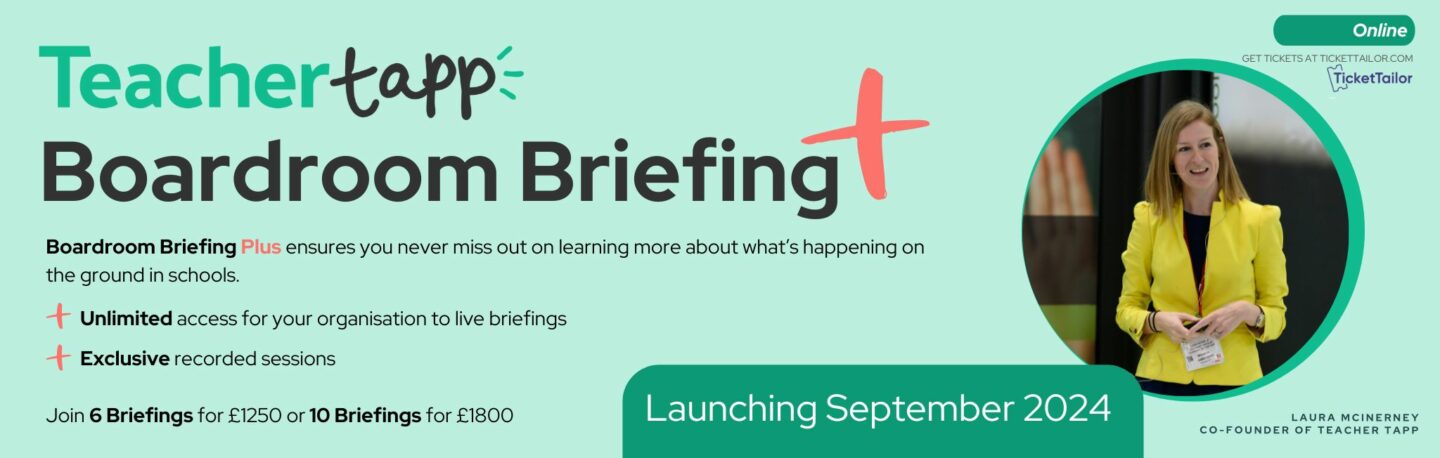The Teacher Tapp Boardroom Briefing is a monthly 30 minute webinar for education business leaders. Learn about the latest trends across classrooms, ed-tech, and edu-businesses with Teacher Tapp co-founder Laura McInerney.