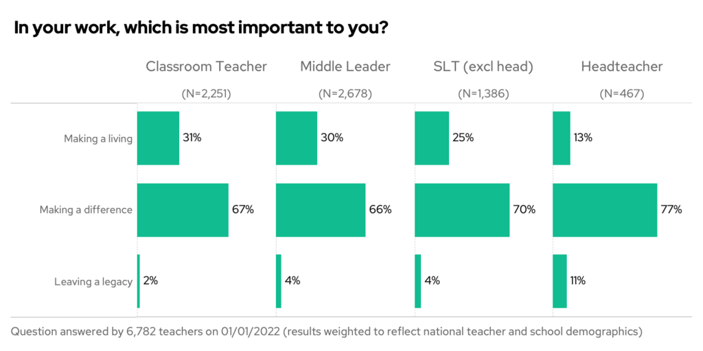 The Teacher Tapp genie was back, granting you one of three wishes for 2022! Top results, total well-being or £1 million? The million pounds was the outright winner in this genie question (77%), and given it’s a life-changing sum of money it isn’t so surprising.