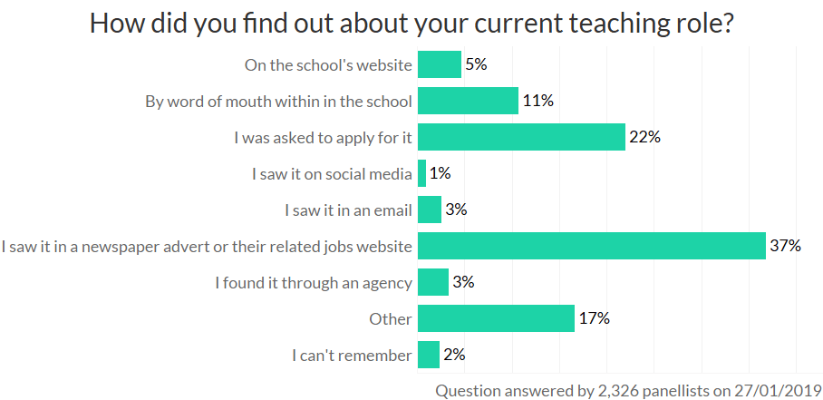 Searching job adverts remains an important way of finding opportunities at new schools, though headteachers were more likely to report that they were asked to apply for their job.