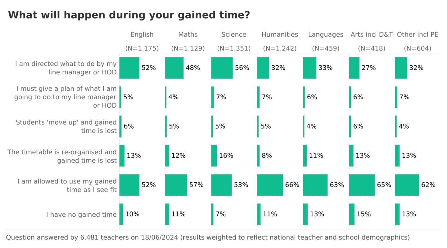 We also discovered that 17% of you either have timetable changes or students move ‘up’ so gained time goes to those who will have Year 7 in September rather than those who had exam classes.