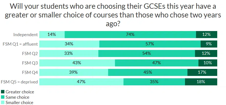 While most pupils in independent schools appear to have the same GCSE choices as they did two years ago, for state schools located in the poorest areas around half have cut back on the number of courses.