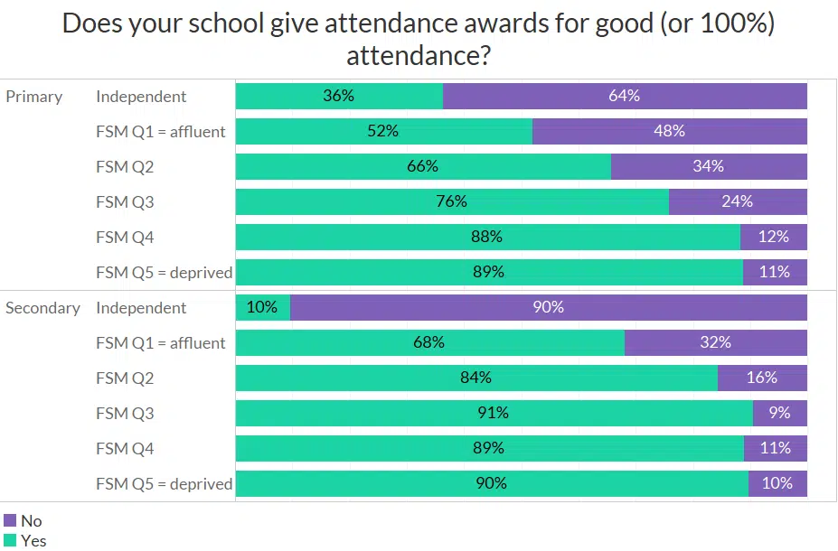 Many of you said your school does reward attendance. In schools located in the poorest areas around 90% give out attendance awards.