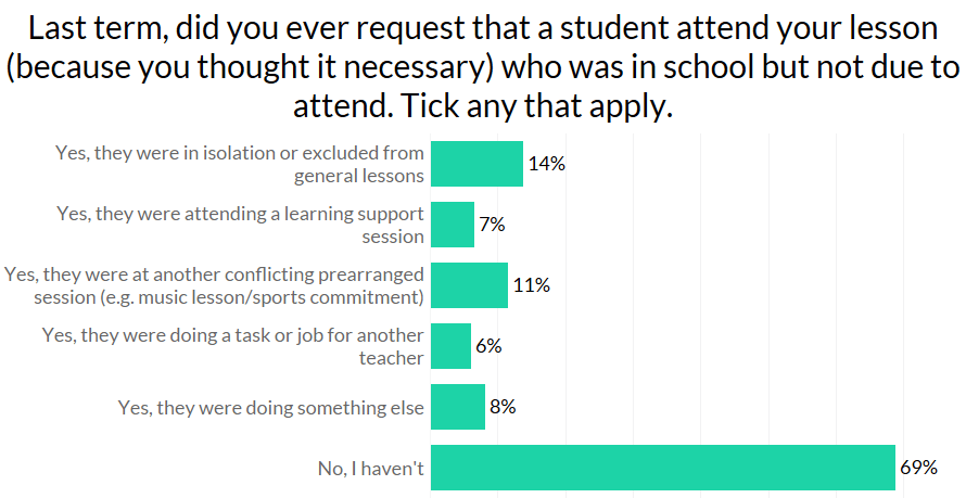 When we asked, you told us that pupils were sometimes missing from your lessons for sports commitments or because they had been generally excluded from lessons.