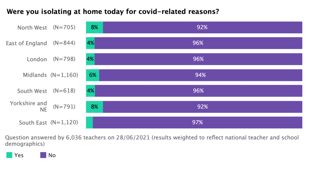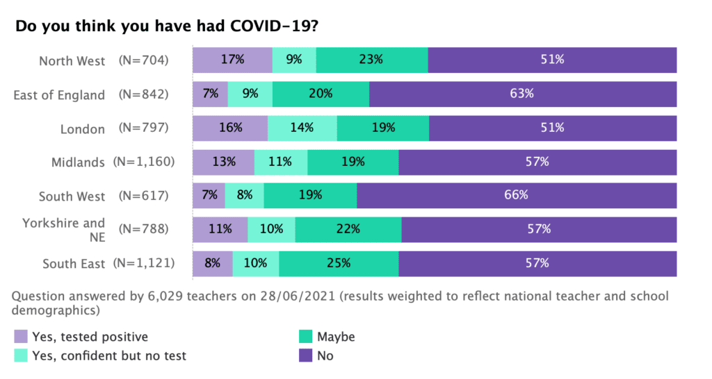 Given the North West’s higher infection rates throughout the pandemic, plus London’s run-in with the Kent variant, it’s not a surprise that more teachers said they’ve tested positive in these areas.