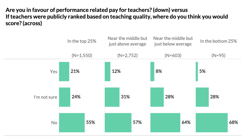 Likewise, teachers who felt they would be ranked in the top 25% of teachers were happier about the idea of performance pay than those concerned about their performance.