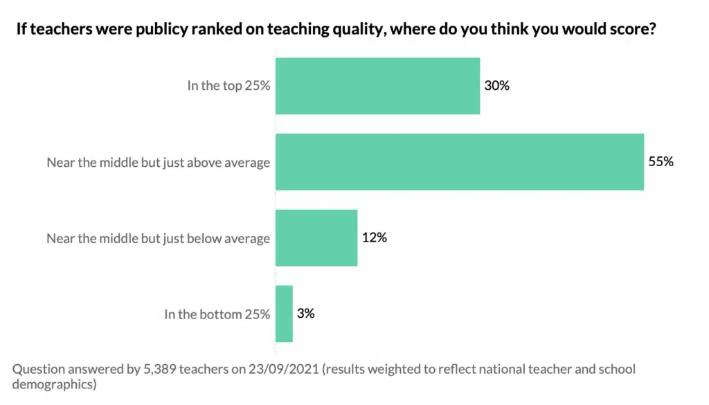 A few weeks ago someone on social media asked if we had any data on how good teachers think they are at their jobs. Reader: we do.
