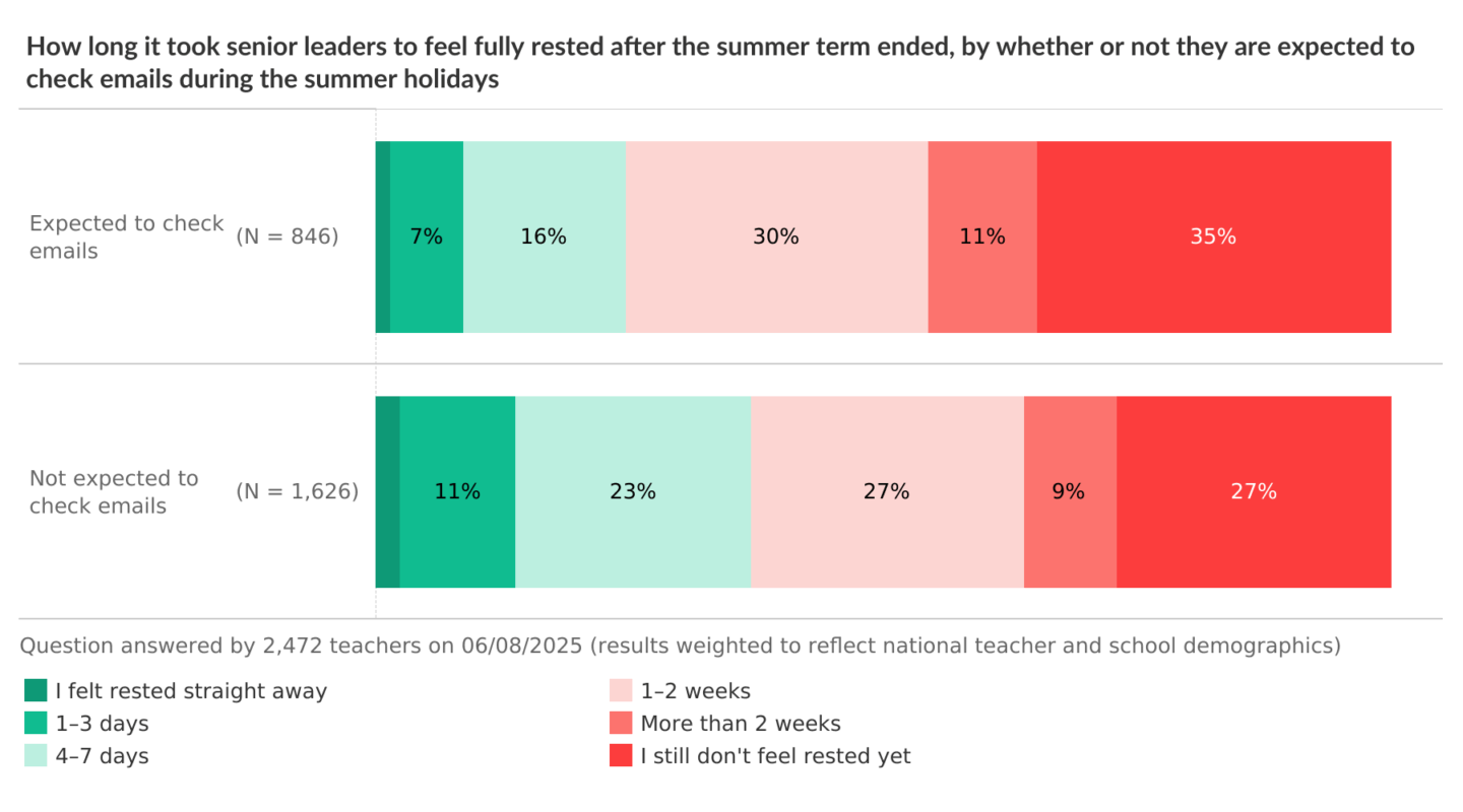 Senior leaders in schools take on slightly different responsibilities over the summer — such as safeguarding concerns and managing exam results — which can mean work emails still need to be checked.