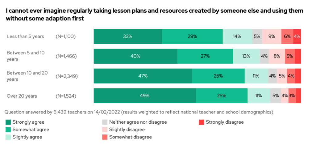 Government ministers sometimes say that workload can be solved if all lesson plans were centrally provided – but you don’t quite agree. Over 80% of teachers say that lesson plans and resources require adaptation to fit the needs of their class.