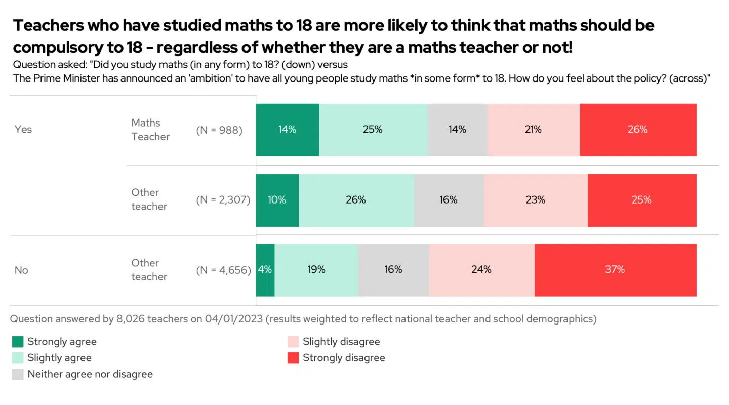 Back in England, some of you are (slightly) more in favour than others. For example, 32% of primary teachers agreed with the policy, compared to 25% of secondary (perhaps because they’re not going to have to implement it either!)