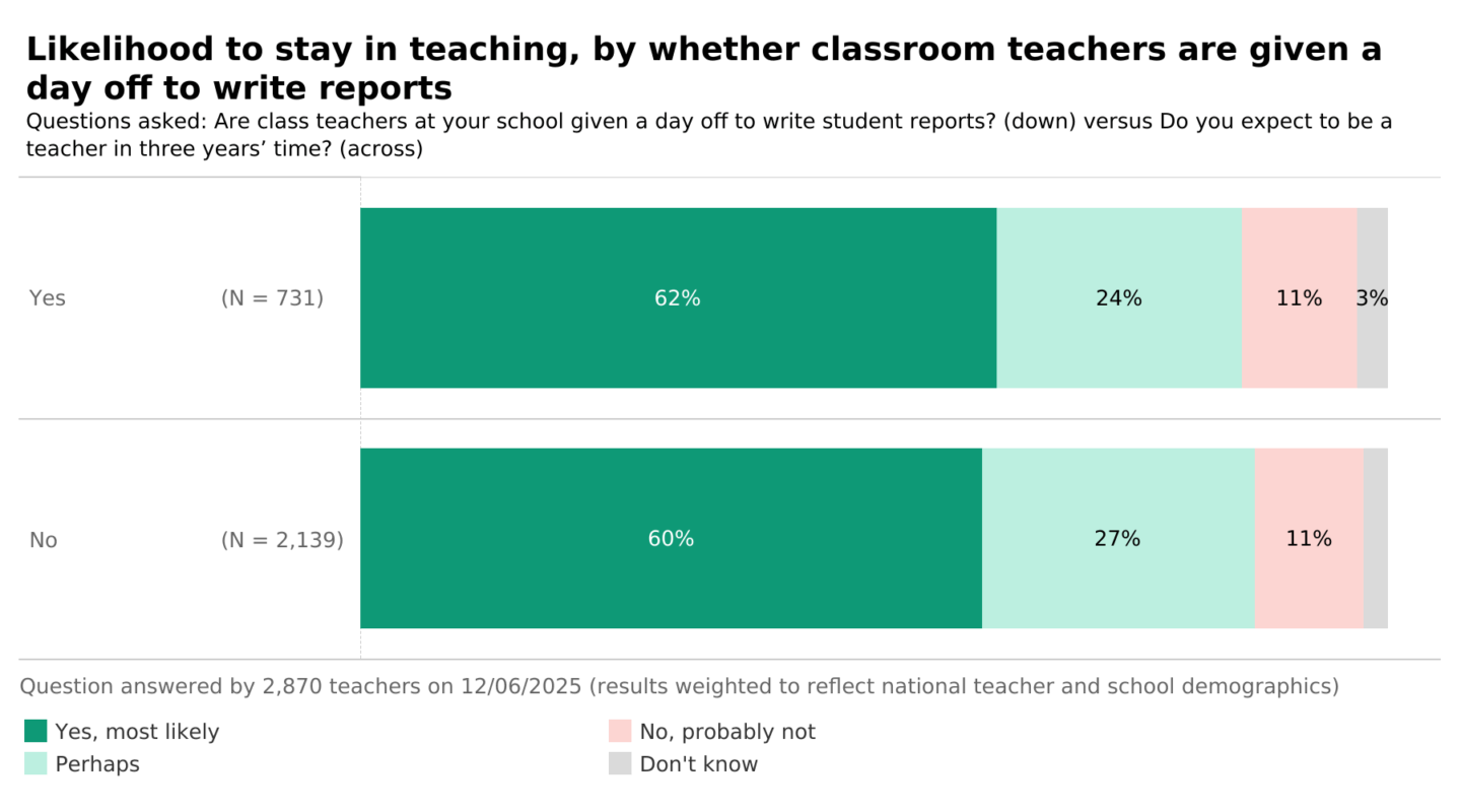 It’s one of the big questions Teacher Tapp was made to explore — and the answer is… nope! It doesn’t seem to make a difference.