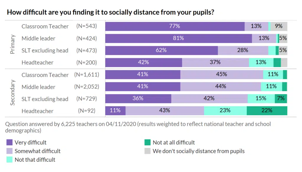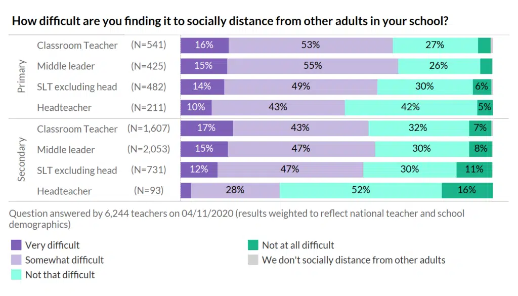 Secondary heads also seem to be the only group not finding it difficult to socially distance from other adults in the school.