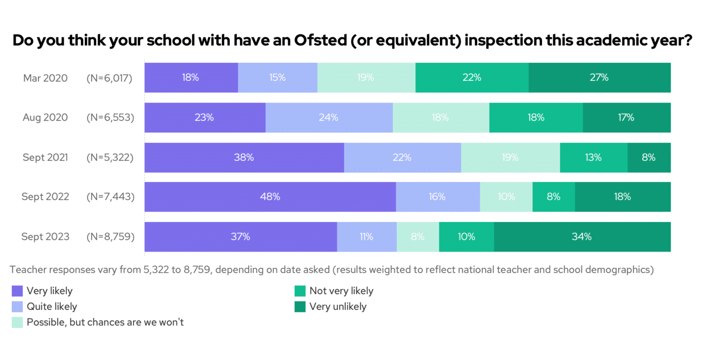 📉 Fewer of you believe your school is in the ‘Ofsted window’ this academic year than last. This likely reflects the fact post-Covid backlogs have reduced, but there’s still far more of you who believe you will be inspected than Ofsted will manage!