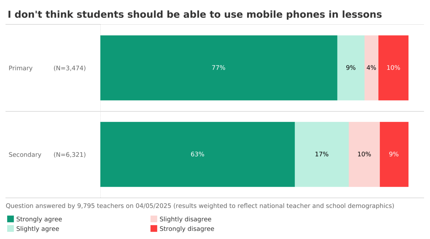 The good news is 0% of primary teachers reported a mobile phone disrupting the last lesson 👍.