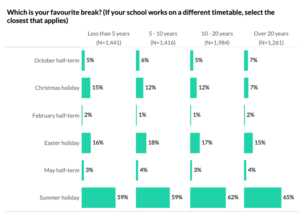 The Christmas holidays lose popularity the more experienced a teacher has, seemingly going towards the Summer holidays. Is this what’s known as the summer slide?