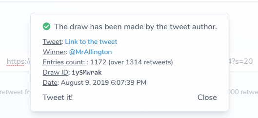 So the tweet carried on for a few weeks until we decided to do an early draw. And then realised we’d actually already picked a winner back on the 9th. So, first up, we’ve decided to honour that winner!