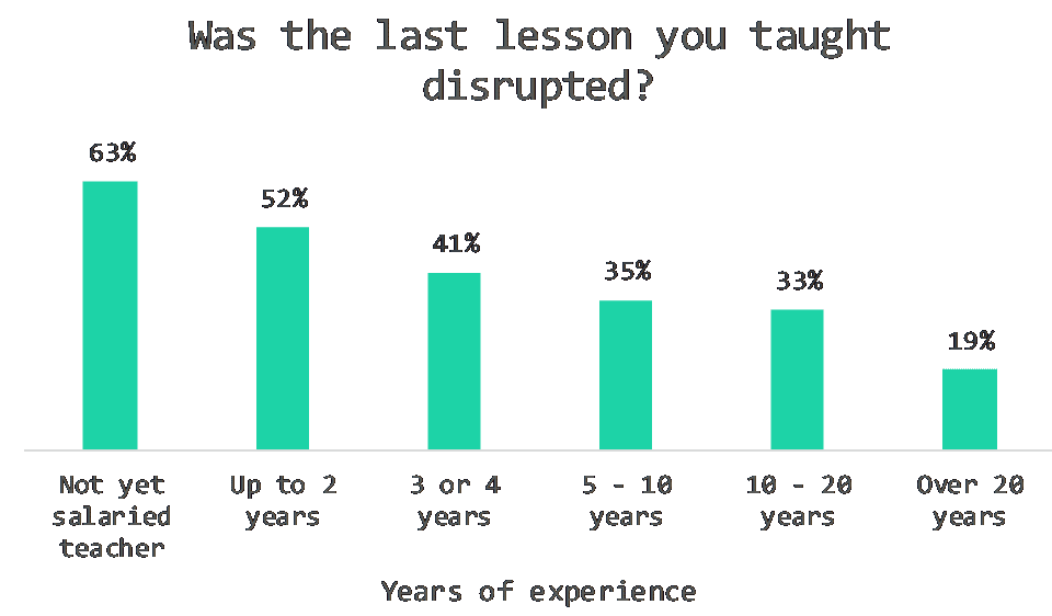 But the fact that 63% of trainee teachers, and 52% of teachers in their first two years, had behaviour disruptions in their last lesson is a problem.