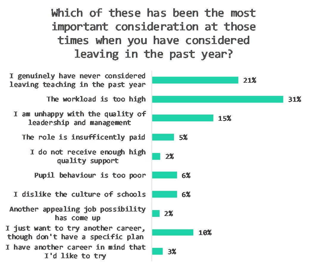 1. Workload really is driving teachers to think about leaving, but there’s a twist…
