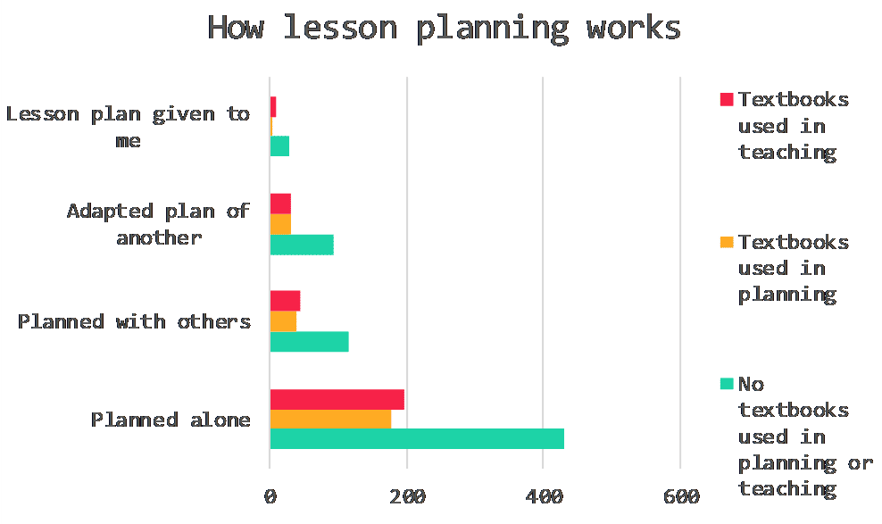 Most of the time, teachers are not using textbooks in their planning or in their classroom teaching.