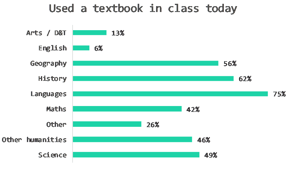 For example, MFL teachers use textbooks at around 12 times the rate that English teachers do.