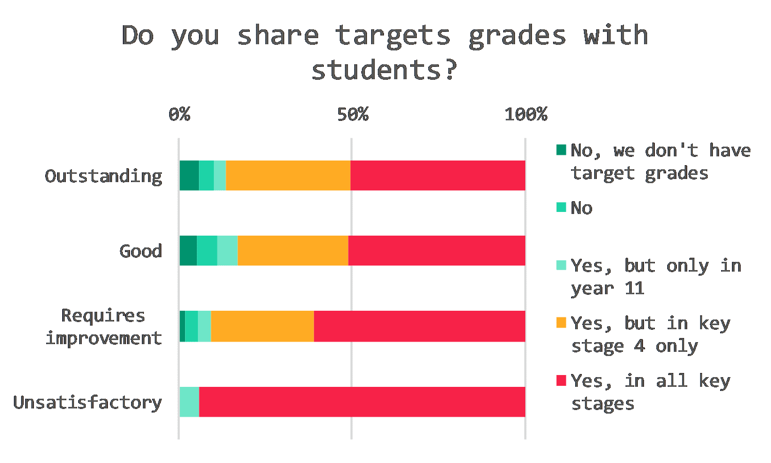 As with the target grades, the reasons for this may be varied. But what it shows, again, is that Ofsted are not looking for you to give everyone target grades all across secondary school!