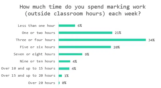 18% of teachers said they spent seven or more hours EACH WEEK marking books — that’s the equivalent of a whole extra work day per week.>