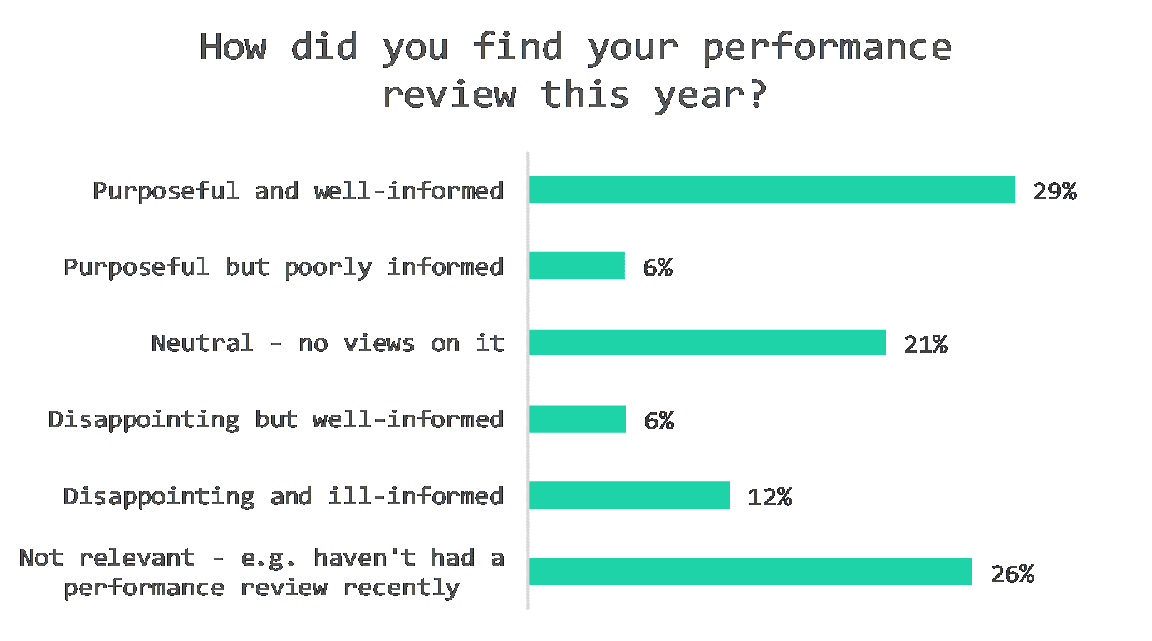 Around a third of teachers think their performance review was a purposeful exercise. (But 20% also thought it was ill-informed).