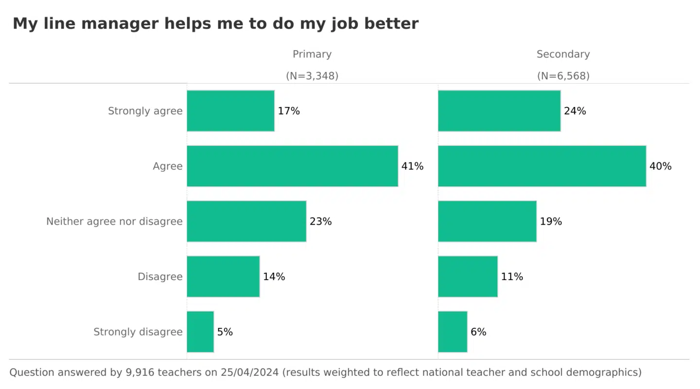 Generally, you were all pretty positive about your line managers – with 64% agreeing in secondary and 58% agreeing in primary.