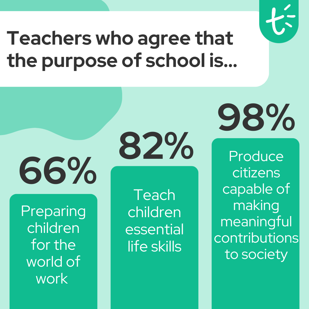 Just based on these three, it was creating citizens who can make meaningful contributions to society who came out top with 98% agreeing that this was the purpose of schools.