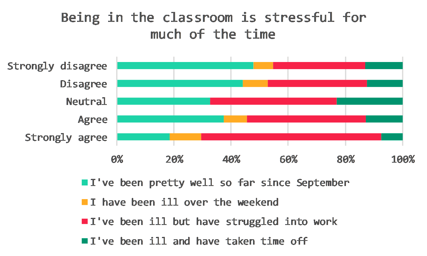 People who strongly agree their classroom is stressful were the most likely to feel ill but also the least likely to take time off.