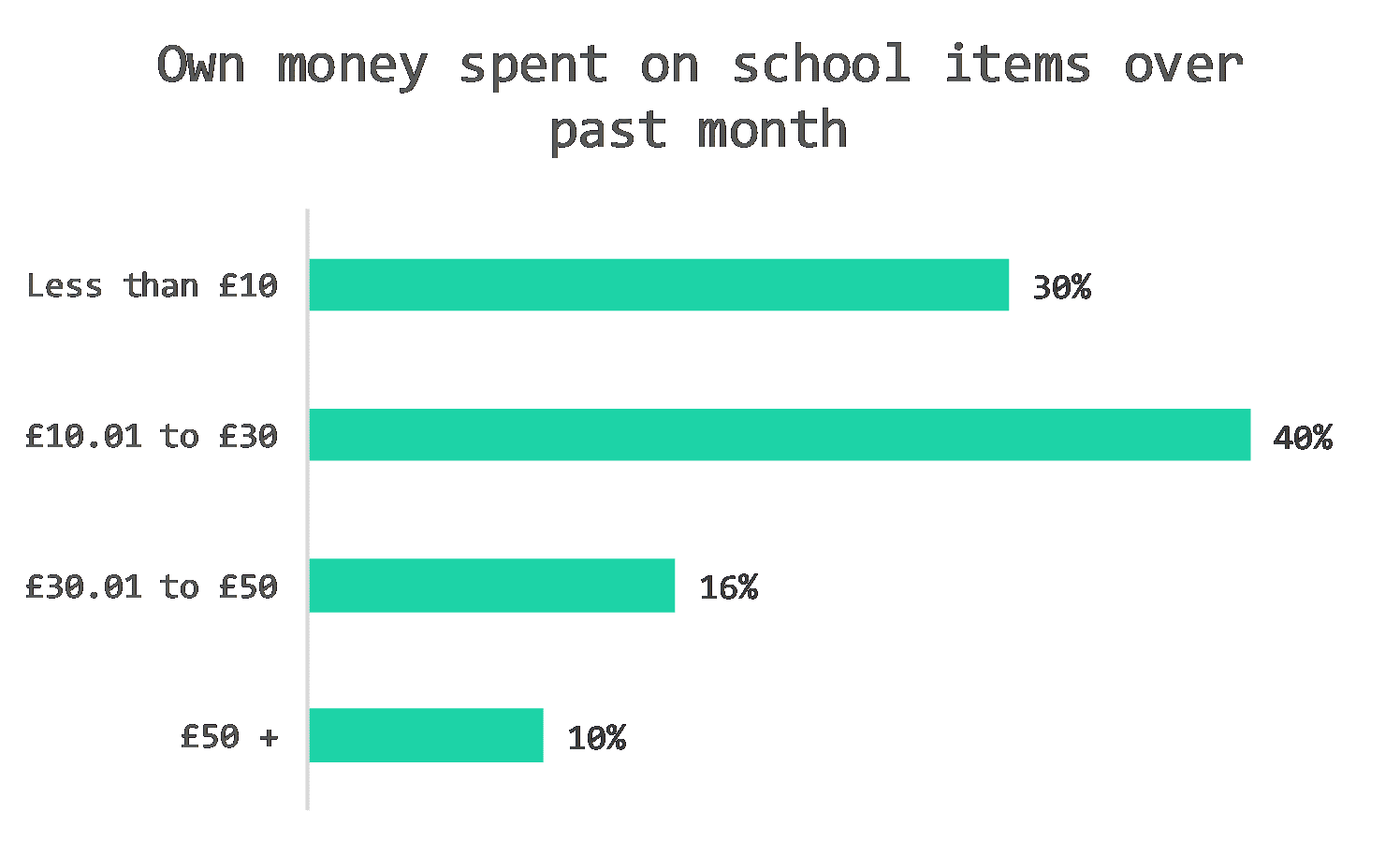 4. Most teachers spend £10+ per month on supplies using their own cash