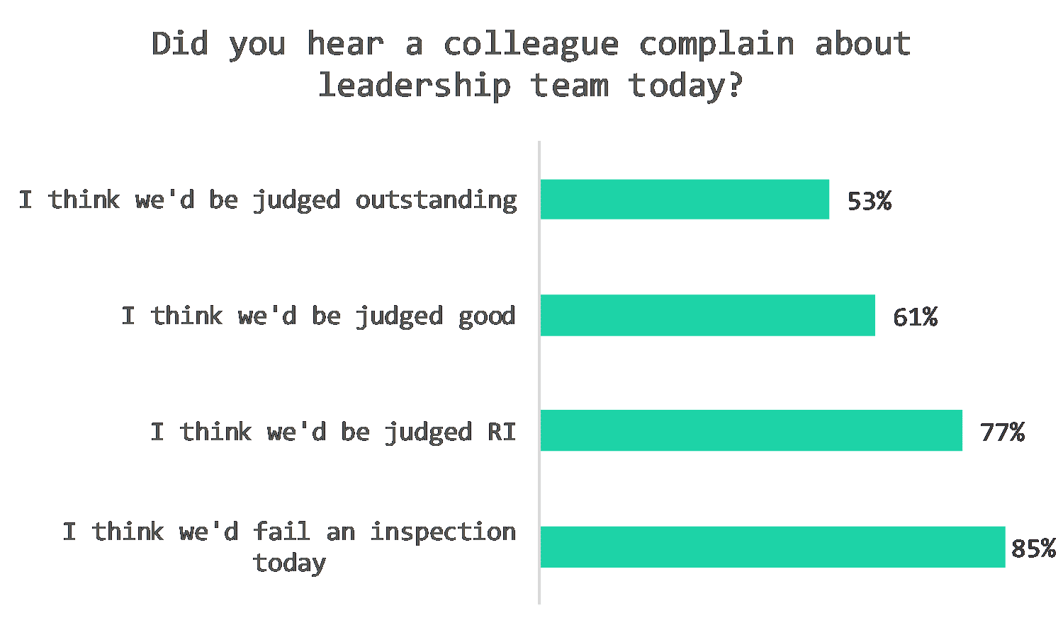 This week we asked the Teacher Tapp panel how they thought their school would be rated if Ofsted suddenly appeared. On a separate day, we asked if they had heard a colleague complain about the senior leadership team in the past 24 hours.