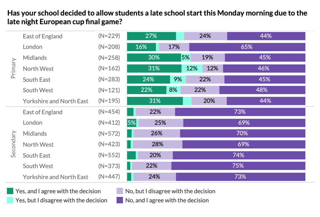 Secondary schools were more conservative in their approach but around a quarter of secondary teachers disagreed and wanted a later start!