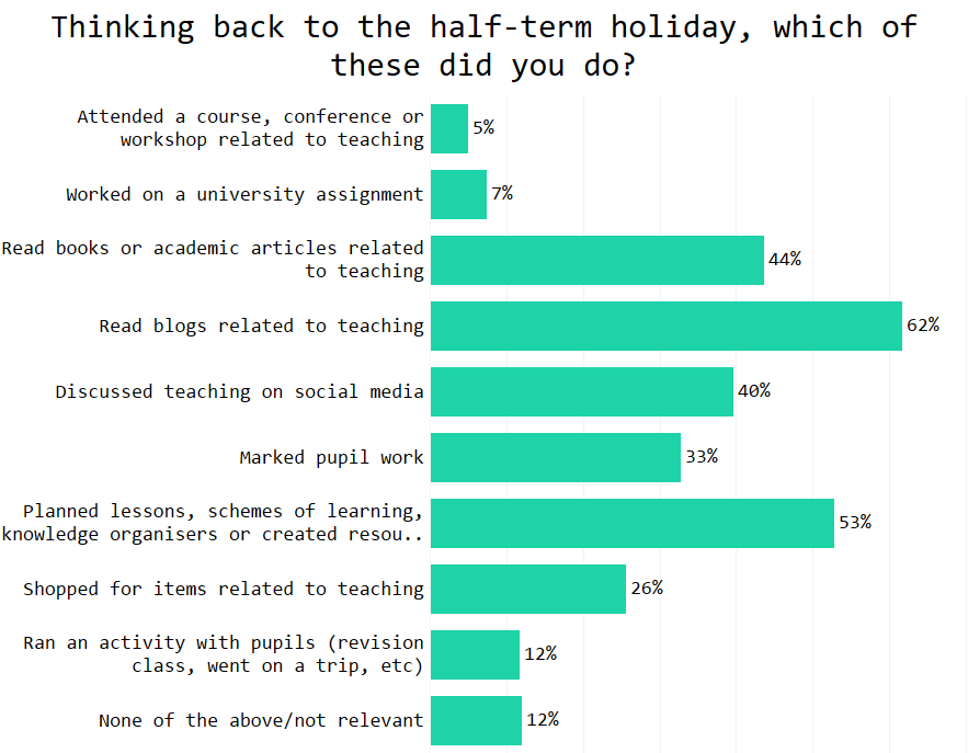 As the graph on the right shows, there’s a whole plethora of activities that teachers undertake during the breaks.