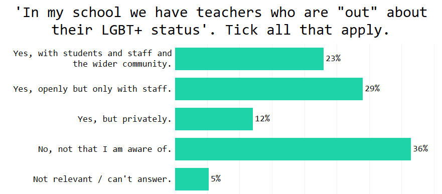36% of teachers said they were not aware of any teacher in their school who was “out” about their LGBT+ status.