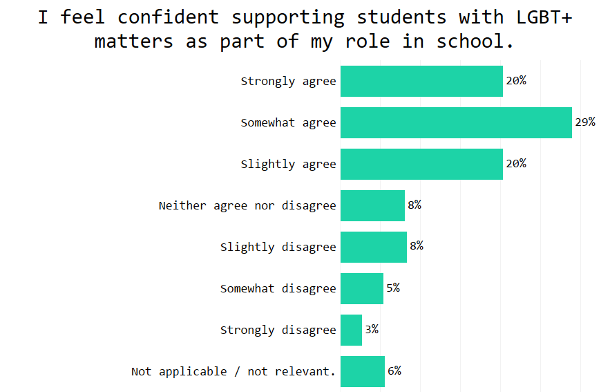 Most teachers said they felt confident supporting colleagues and talking about LGBT+ matters in schools.
