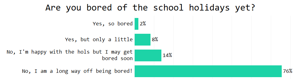 Another question teachers wanted to know was the point at which everyone gets bored of the holiday. Turns out, they’re not bored by the end of week three!