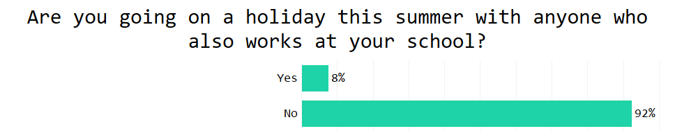 In fact, 8% of teachers are even going on holiday with someone who also works at the school. Given 25% of teachers are in a relationship with another teacher, however, we may assume quite a few of these are couples working in the same school.