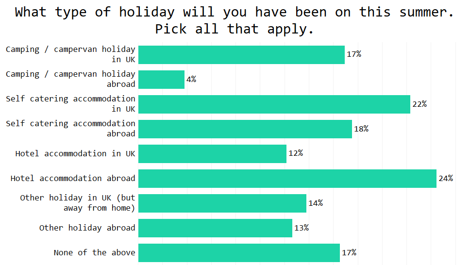 And if you’re staying at home, you’re not alone – 17% of people said they were not going on any type of holiday.