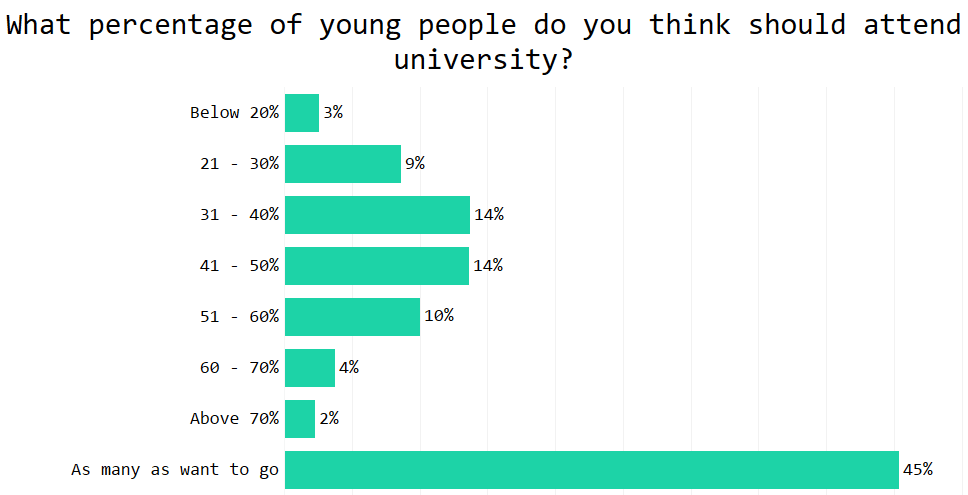 Last Thursday was A-levels day, causing the usual spark of people arguing over the number of young people going into university. Tony Blair was famously laughed at for arguing it should be 50%. But if 50% isn’t the right rate, what is?