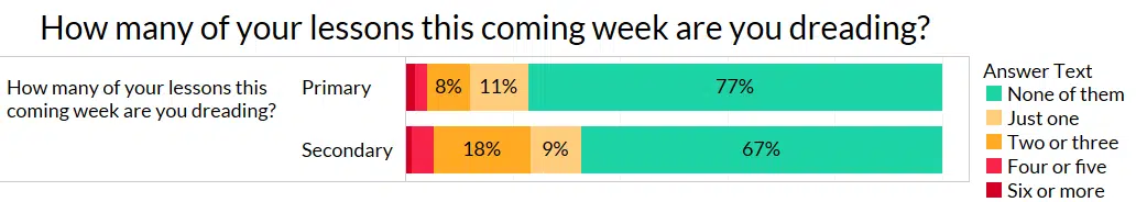 Teacher retention is worse in secondary schools and again we see more secondary teachers dreading lessons on a Sunday night compared to primary colleagues.