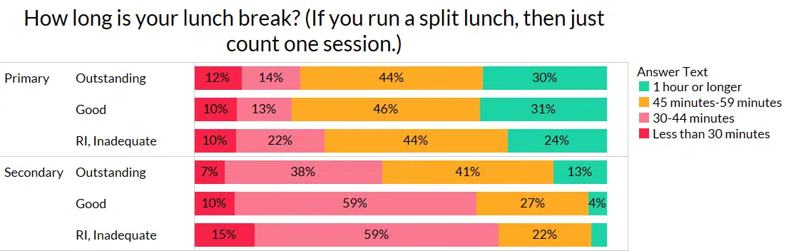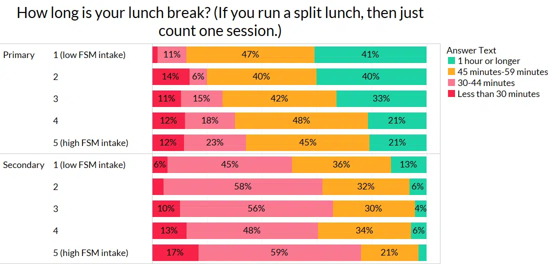 One in ten schools has less than 30 minutes for lunch, and a further 38% have less than 45 minutes.