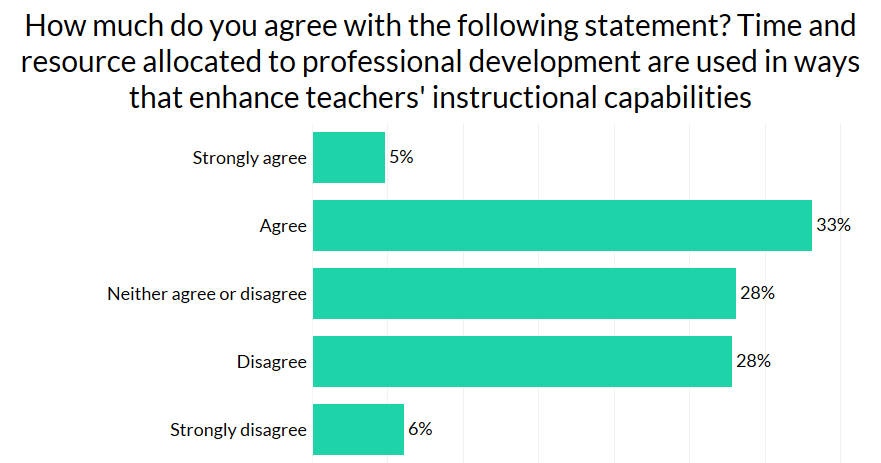 Teachers are heavily divided about the idea the time for professional development enhances their instructional capabilities.