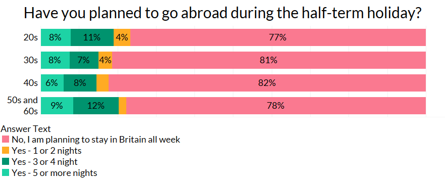 Is the difference caused by teachers in their 20s and 30s wanting to jet off on holiday during their breaks? ?Not really! Teachers in their 50s and 60s have planned more holidays abroad this October than those in their 20s.