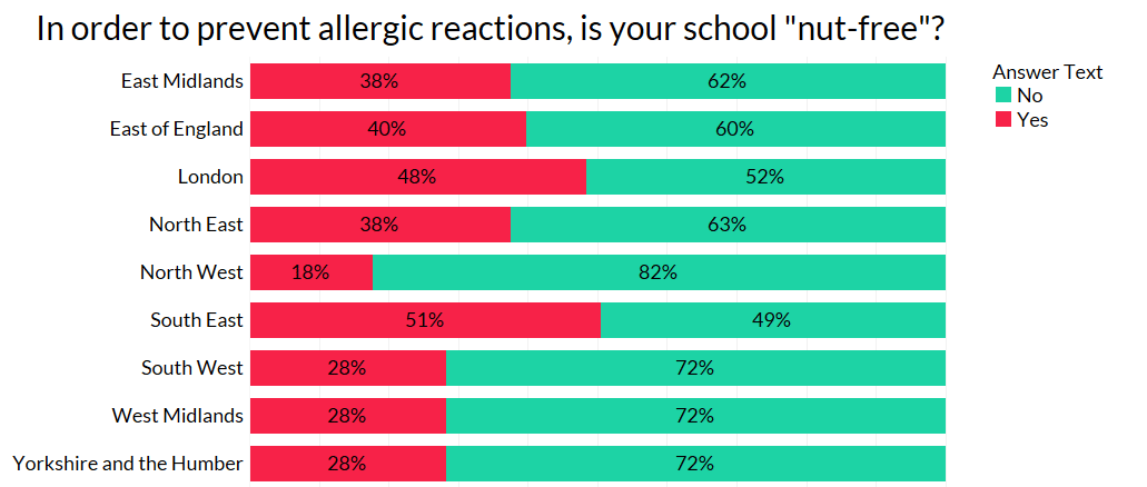 We also found a substantial regional difference – with just 18% of schools in the north west being nut-free versus 51% in the south east.