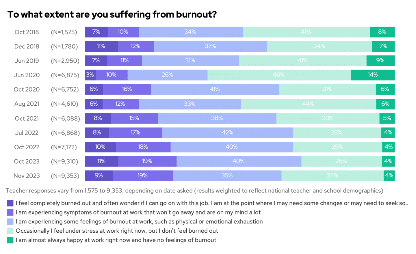 - 24% would opt not to pursue a teaching career if given the opportunity to decide anew, a notable increase from 15% prior to the pandemic.