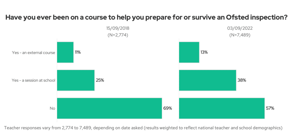 The last time we asked about courses to help you prep for or survive Ofsted, around 36% of you had either done an in-school or external course. That figure is now 51%!