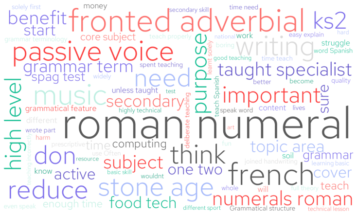 To help us write these questions, we asked an open-ended question: If you could remove one topic area from the KS2 National Curriculum in ANY subject, what would it be? We’ll be analysing the responses fully in coming weeks but, for now, here is a flavour of the kind of things that were mentioned: